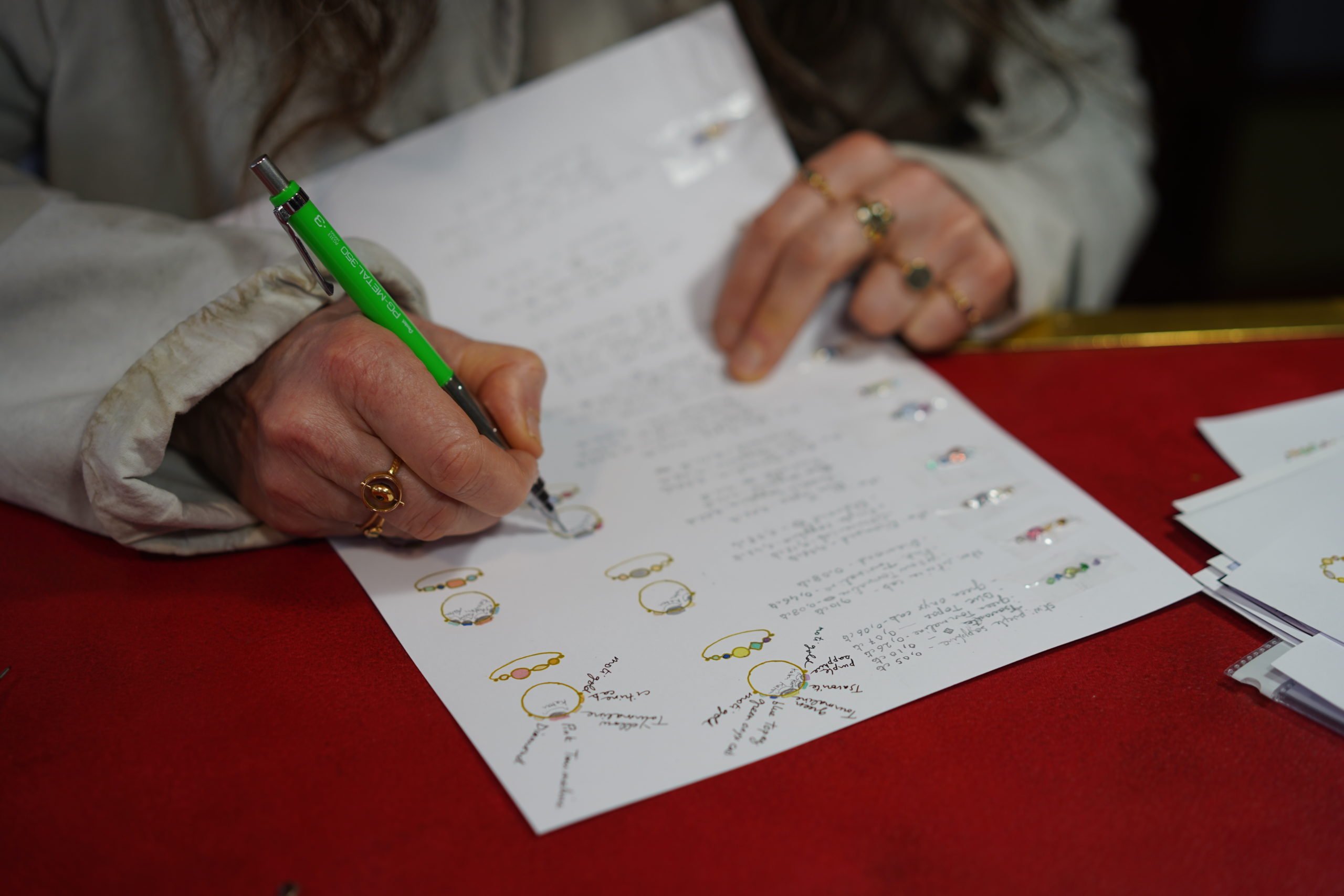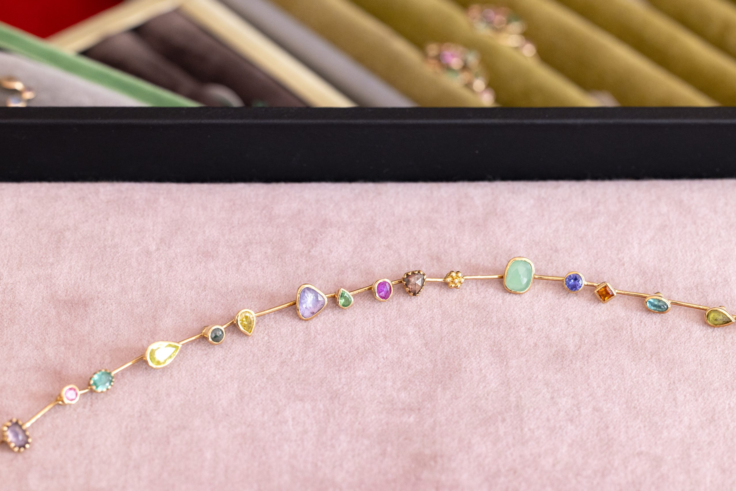 Les bijoux sont ainsi pensés et dessinés autour des pierres, toutes différentes de formes et de couleur.