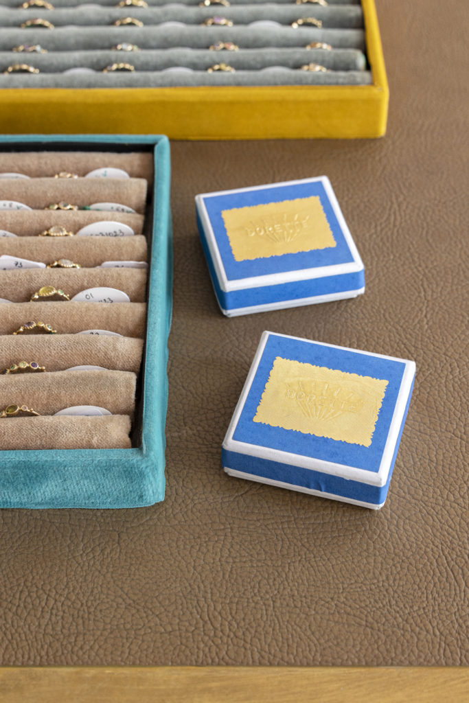 Boucles d’oreilles « Nageoire », bracelet « Jardinage », bagues « Simples » aux combinaisons de couleur infinies, « Poissardes » légères ; bracelet « Souriant », « collier de la Reine », bague « Couronnée », et même bague « Super couronnée » : chaque création de Dorette tutoie la lumière sans façon et surtout sans arrogance. Les pierres précieuses, émeraudes, diamants, saphirs, rubis, y côtoient les autres, chrysobéryls, spinelles et tsavorites, dans la simplicité d’une rencontre, d’un coup de foudre.
